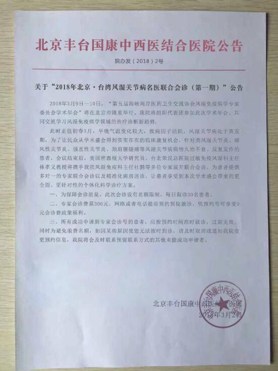 附:关于“2018年郑州·台湾风湿关节病名医联合会诊(第一期)”公告