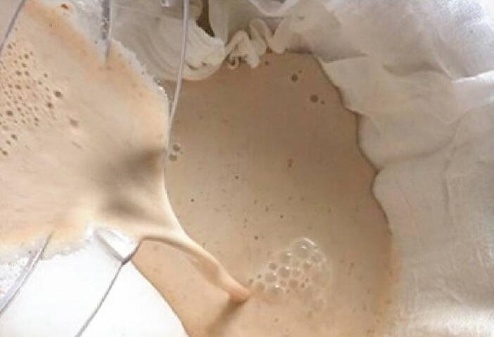 Step4.把过滤好的火麻仁汁倒入锅中,加糖调味,煮滚完成。