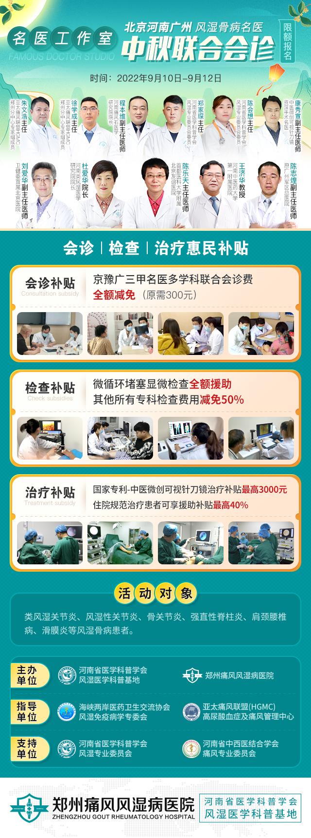 名医工作室|北京河南痛风风湿病名医面对面中秋联合会诊(限额报名)