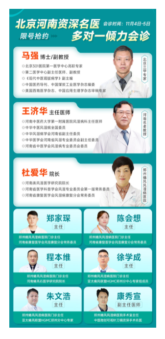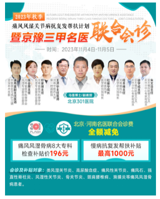 11月4-5日北京301医院专家来郑州痛风风湿病医院坐诊,多项惠民补贴限时申领!